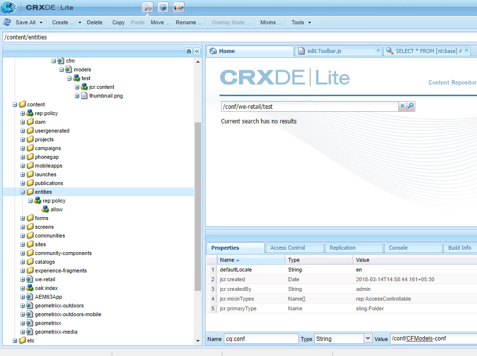 When I am trying to create any Content fragment model using the configuration that i created, it gets stored in CRX under: /conf/testconfig/settings/dam/cfm/models/test-model