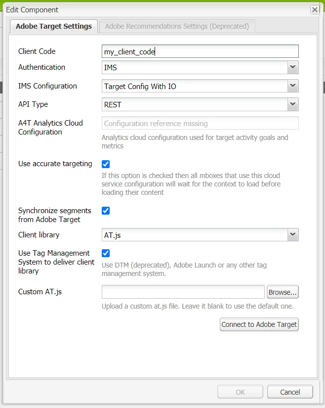 I have verified as well that the /target/mboxes part is hardcoded, so it's not like I can change it... but I am still wondering if there's a clear mistake I am making with this integration.