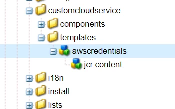 We have static template under /apps/my-project/customcloudservice/templates which is used for AWS cloud configuration.