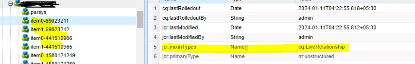 but multi-field property of the sample component cq:LiveSyncCancelled not getting applied