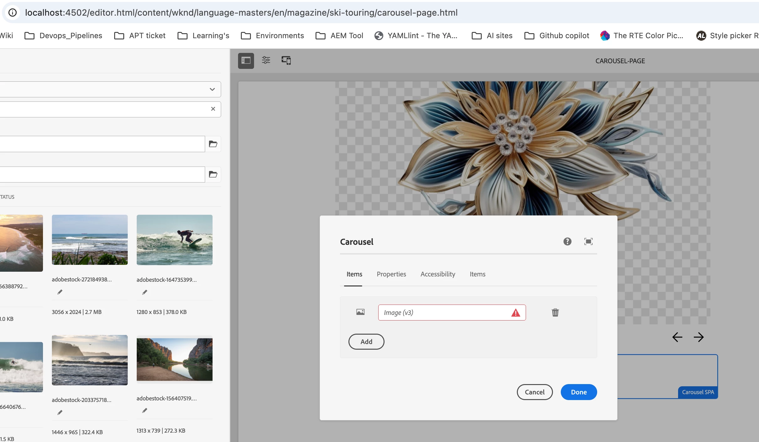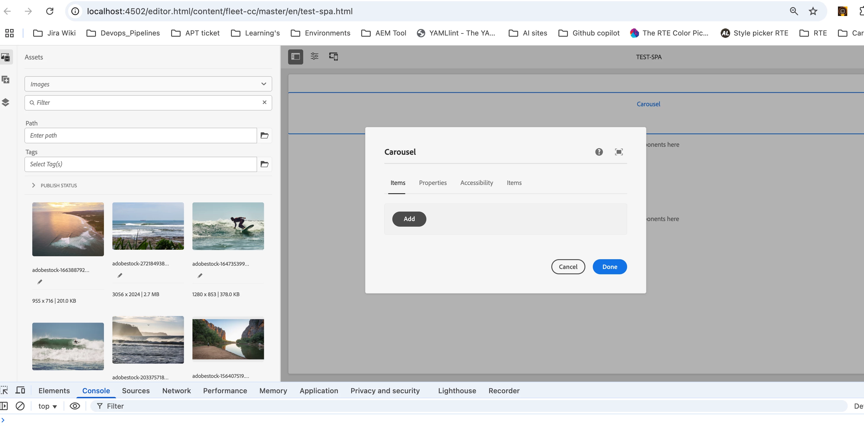 Carousel component's add button is not working in spa-editor