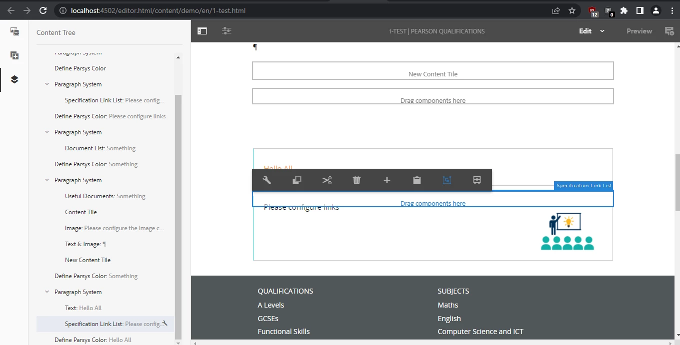 Component is not showing in page but showing in content tree