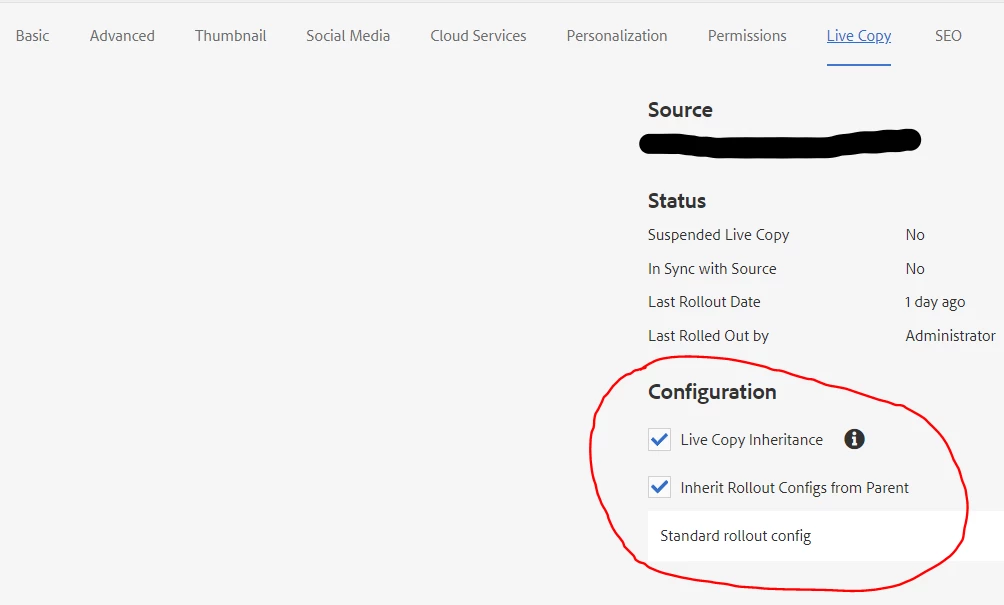 Configuration missing on Live Copy tab of page properties