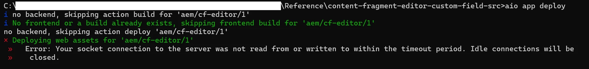 Now, when I ran the command: aio app deploy getting below mentioned error