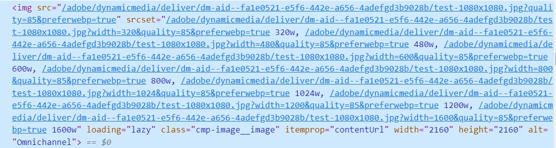 We have not enabled Dynamic Media and using the Teaser Core component (core/wcm/components/teaser/v2), but getting the dynamic media url for that component. attaching the snapshot for the <img src=..> tag.