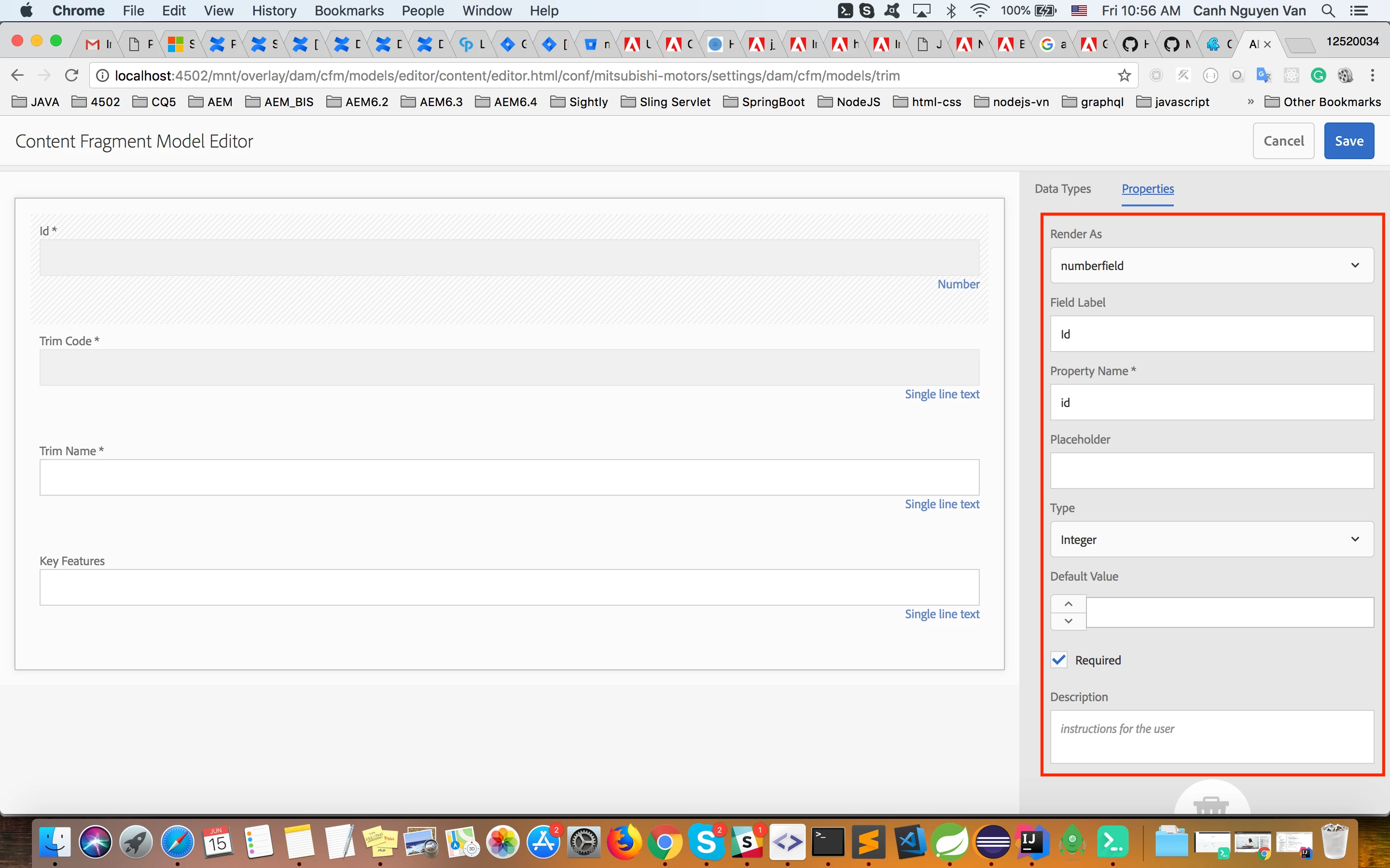 Please help me How to add a property in Data Types properties in Content Fragment Model?