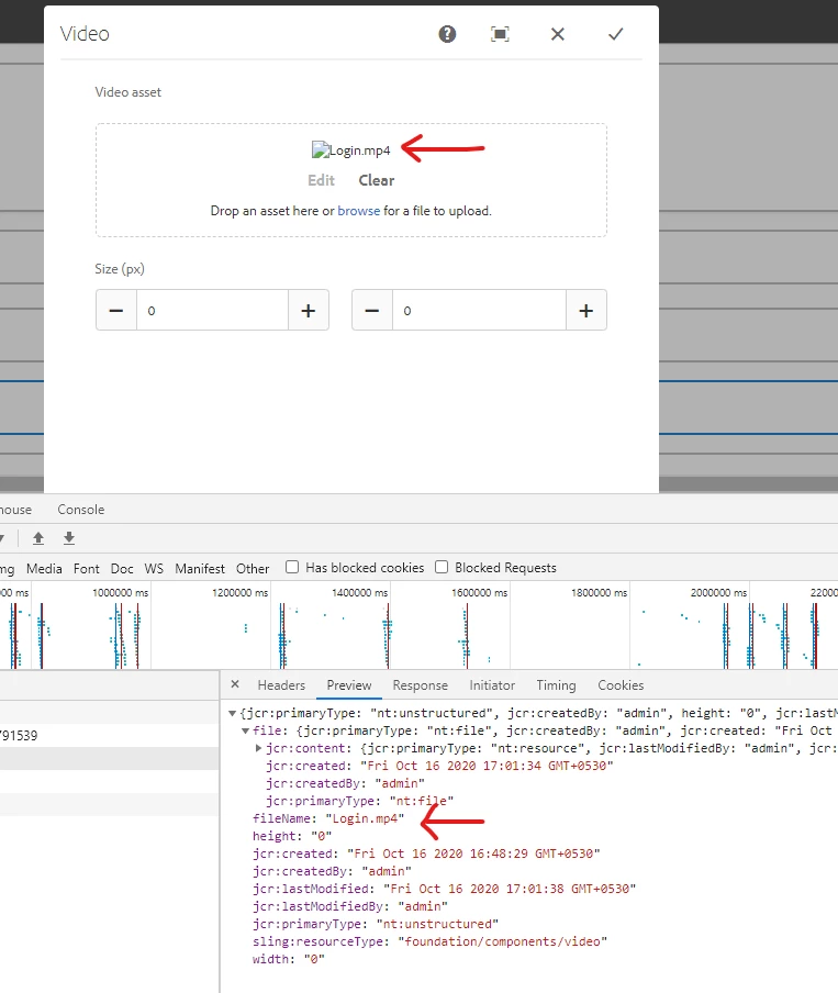 So this works fine if I am dropping a video from DAM but not when direct upload. So on time of direct upload fileNameParameterReference is empty but for image there is a Image model with ${image.src} we are able to get it. is there any same way for video too??