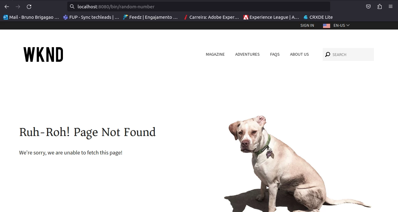 Well, I need to configure dispatcher so I can access a get servlet I've created. It works in author and publish instances. I've also already configured the dispatcher to run on port 8080 using docker and I'm able to access published content via port 8080. Nevertheless, when I try to access my servlet via this link: localhost:8080/bin/random-number it gives me this page with a 404 not found error when I check the browser console:
