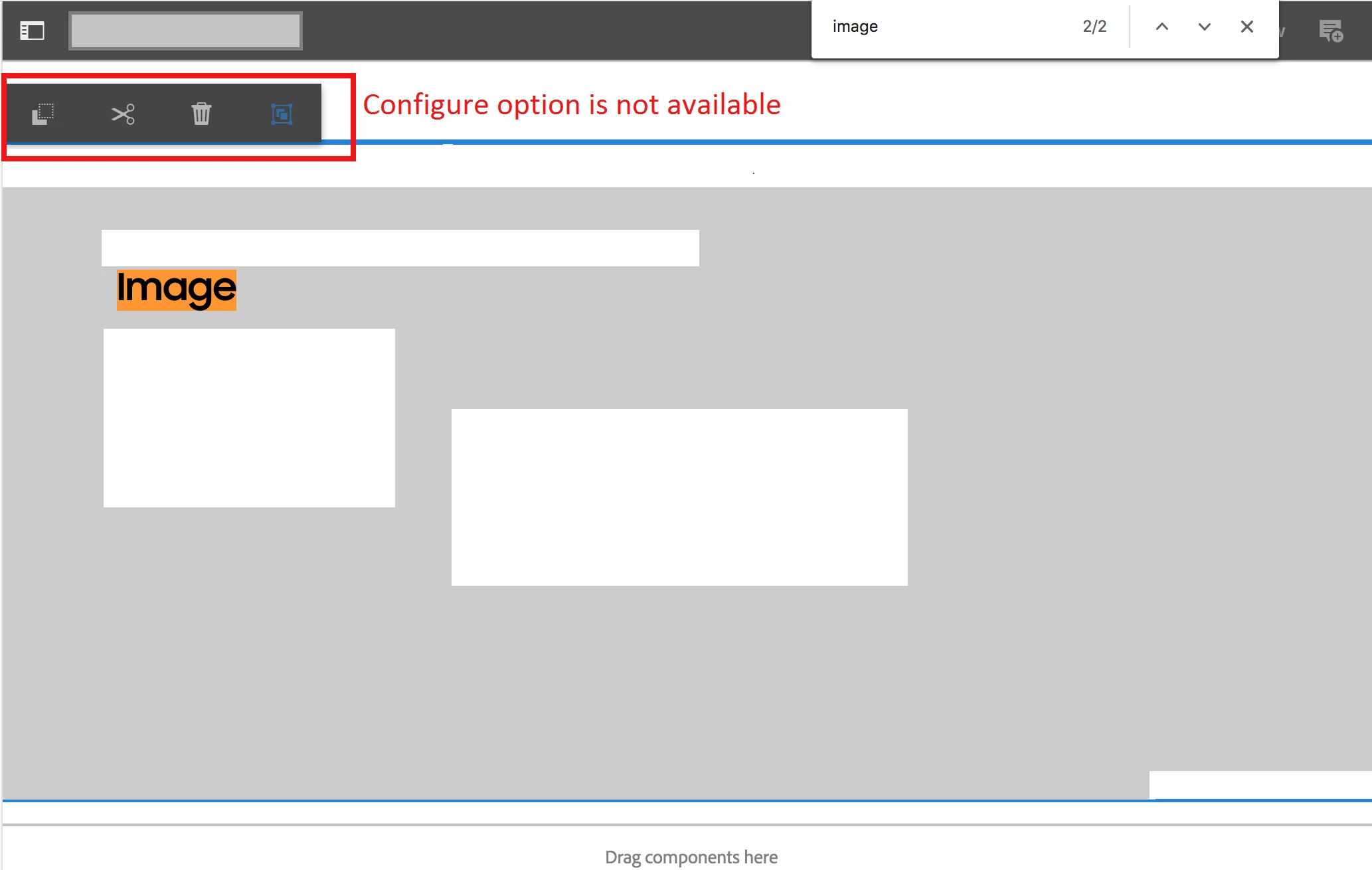 Edit and configure component options are not showing when we search in chrome browser