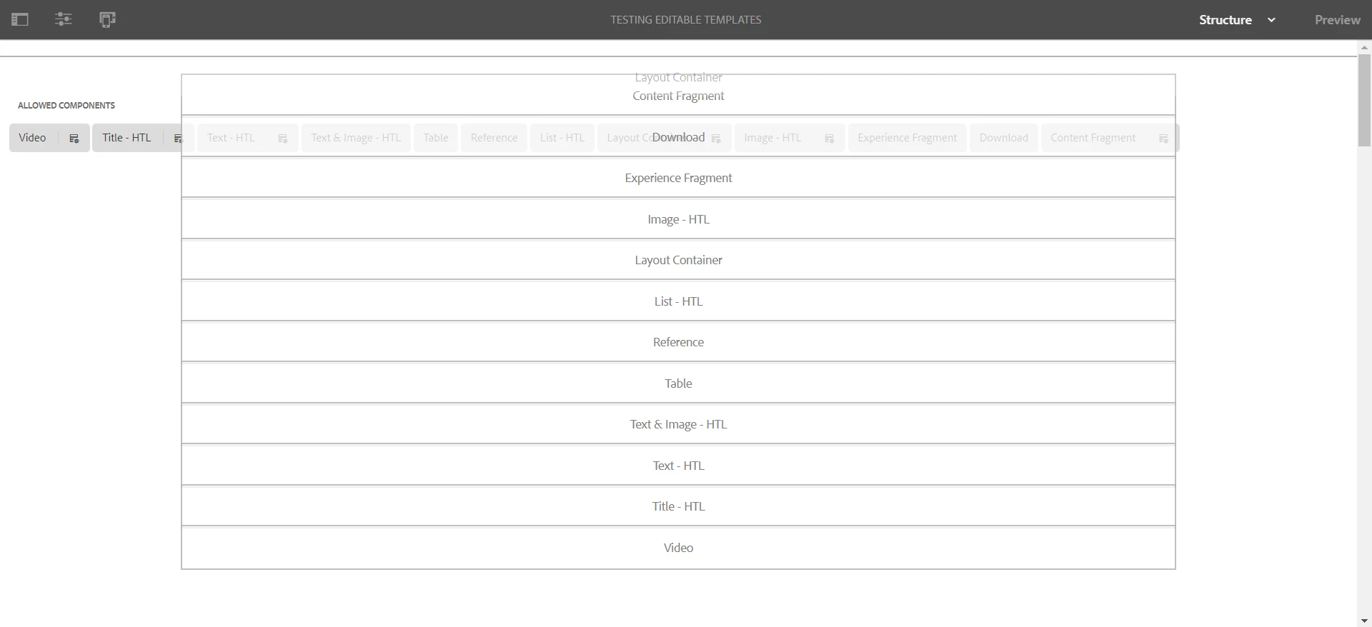 The second issue we're facing is that an unlocked container with allowed components will create those components, rather than listing them in the familiar "Allowed Components" UI. For example:
