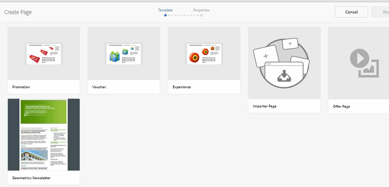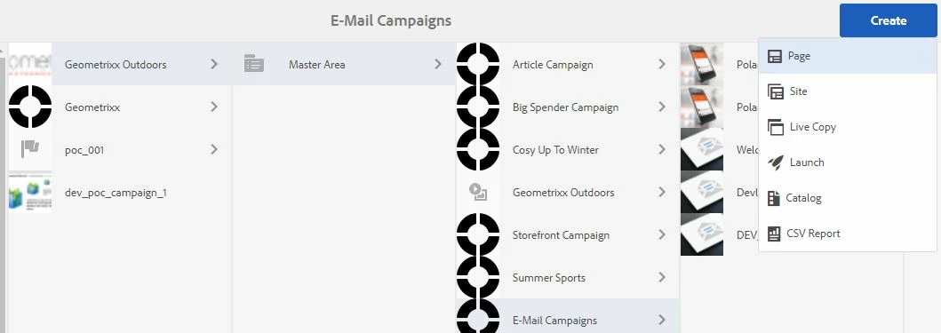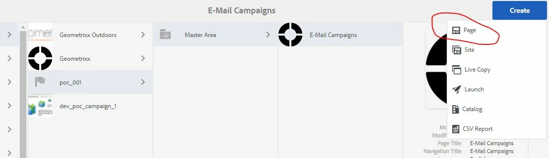 When creating a new page under E-Mail Campaigns in GeoMetrixx the Adobe Campaign V6.1 is available as shown below