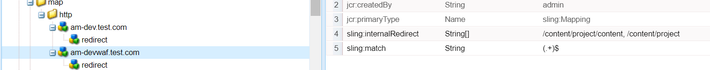 The etc/map settings does not match the origin header of the incoming request, and will stop on the first match it finds for the underlying content path. This is not much of a problem for incoming requests but becomes an issue for outgoing re-written links. e.g., if you have two settings for outgoing mapping i.e map1 for devwaf.test.com and map2 foram-am-dev.test.com both resolving to the content path /content/project/content then regardless of which domain the request comes from, the outgoing short URL will be of the first setting Sling will match for that content path, in this case map1 (whichever is first match. It can be anyone).