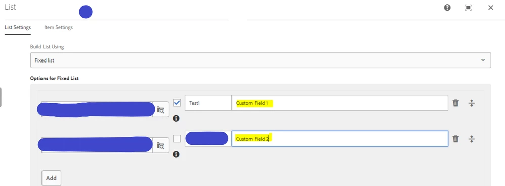 I have a requirement where I have to extend List core component dialog & sling model to add one extra filed to be added along with other 3 fields available under OOTB core list component. I have added a text field under "Fixed List" section along with other 3 existing fields. Last field in the below screenshot -