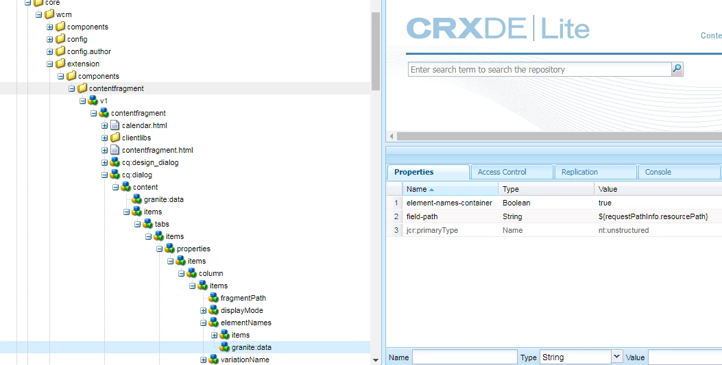 I noticed that the structure of the cq:dialog for the content fragment component in core is also a bit different too.
