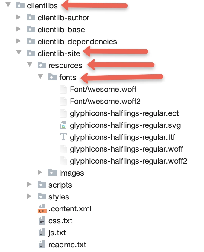 is there any other way to call fonts. Because on "etc.clientlibs" im not able to see fonts there its not creating folder there
