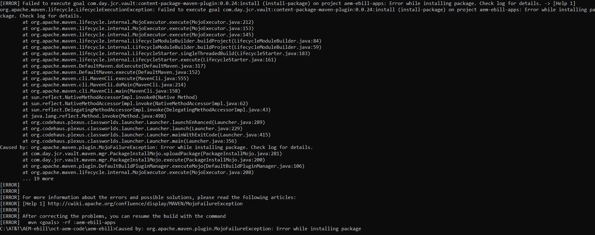 I tried to build the AEM application but getting below error.