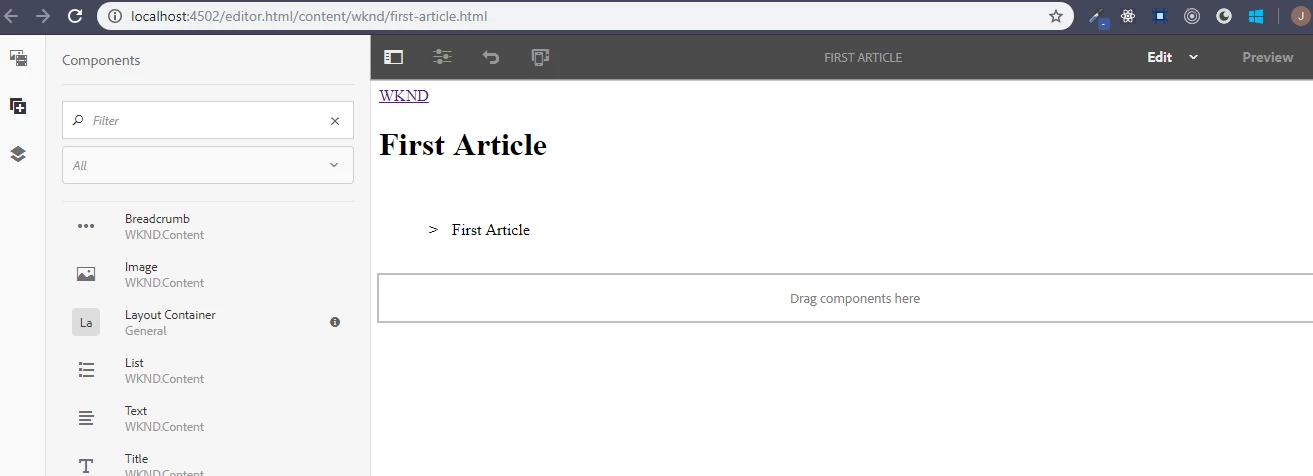 - The tutorial uses core.wcm.components - 2.2.0 and mine uses 2.3.2 (I don't think this is the issue but it may be)