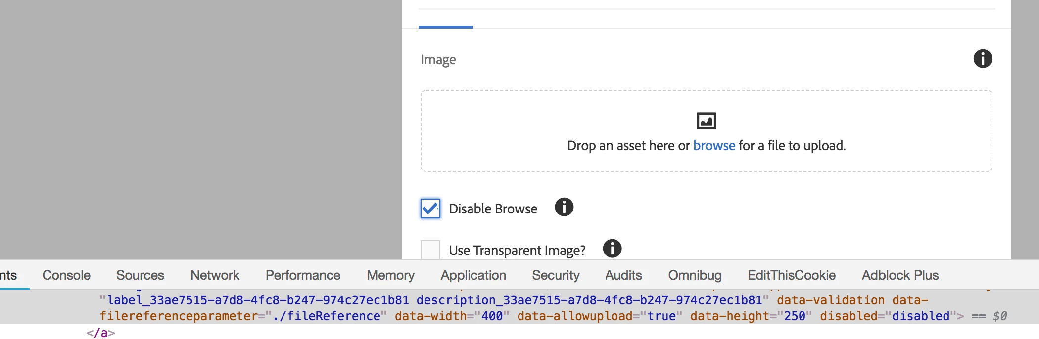 Hide or disable Touch UI dialog (asset) file upload