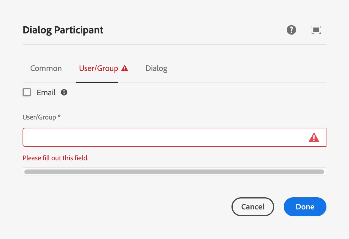 in AEM workflow, how do I assign Dialog Participant Step to the initiator? it seems like I need to select a particular user or group when I configure this step.