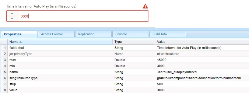 The dialog is throwing an error asking me to enter values only in multiples of 500. I am following the granite ui documentation and entering the step value as a string. Still I am not able to enter any value. Is this a bug or have I given the wrong properties?