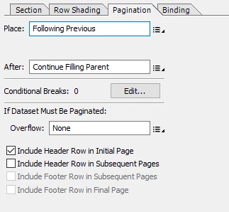 I would like to be able to hide the header row on the first page (during pagination) when there is no more space for the content.