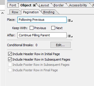 How to hide header row on the first page if there is no space for body content (Adobe Lifecycle Designer)