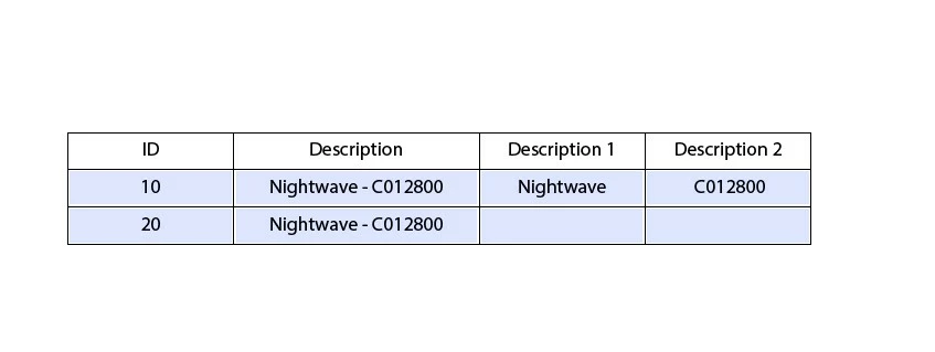 I'd like to split the "TEXT" value from the "Description" value in the line item table so that the split value passes through the description 1 and description 2 columns.