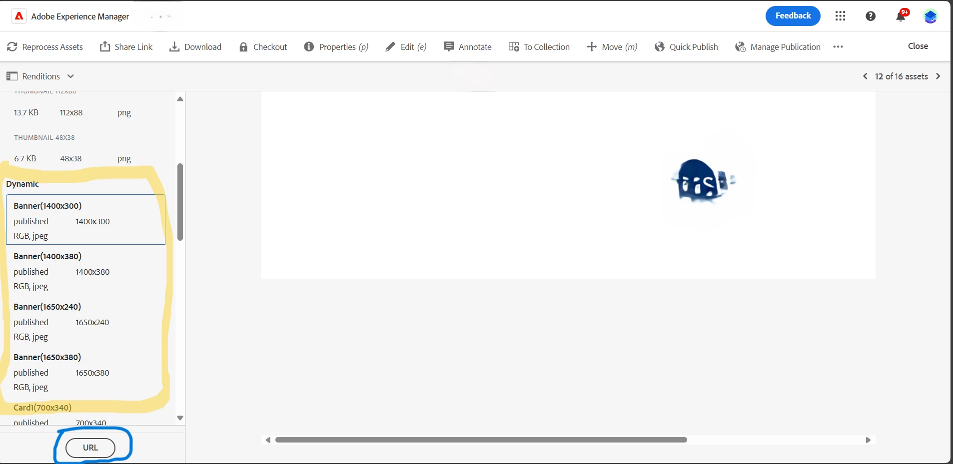 Currently dynamic media providing the renditions URL to images not for the documents below providing the snapshots for reference