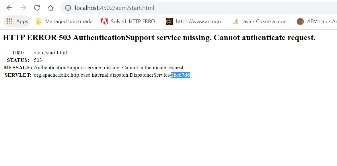 HTTP ERROR 503 AuthenticationSupport service missing. Cannot authenticate request.