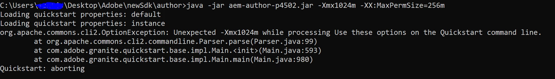 java -jar aem-author-p4502.jar -Xmx1024m -XX:MaxPermSize=256m