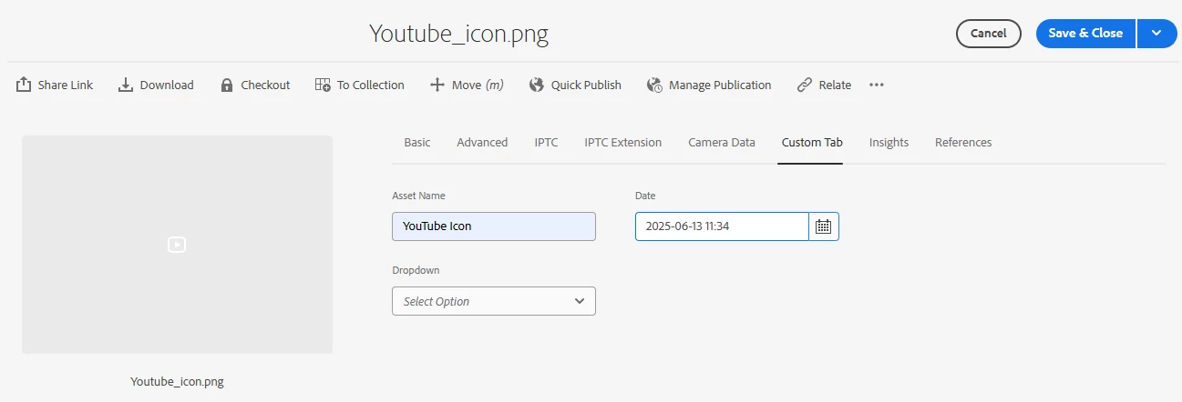 I have created a custom tab in Metadata of DAM assest, whenever i author the values and try to save its throwing error. How to enable edit in metadata of assest