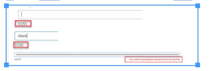 rich text component, in dialog we need error message once the character limit is reached (Char limitation is 100)