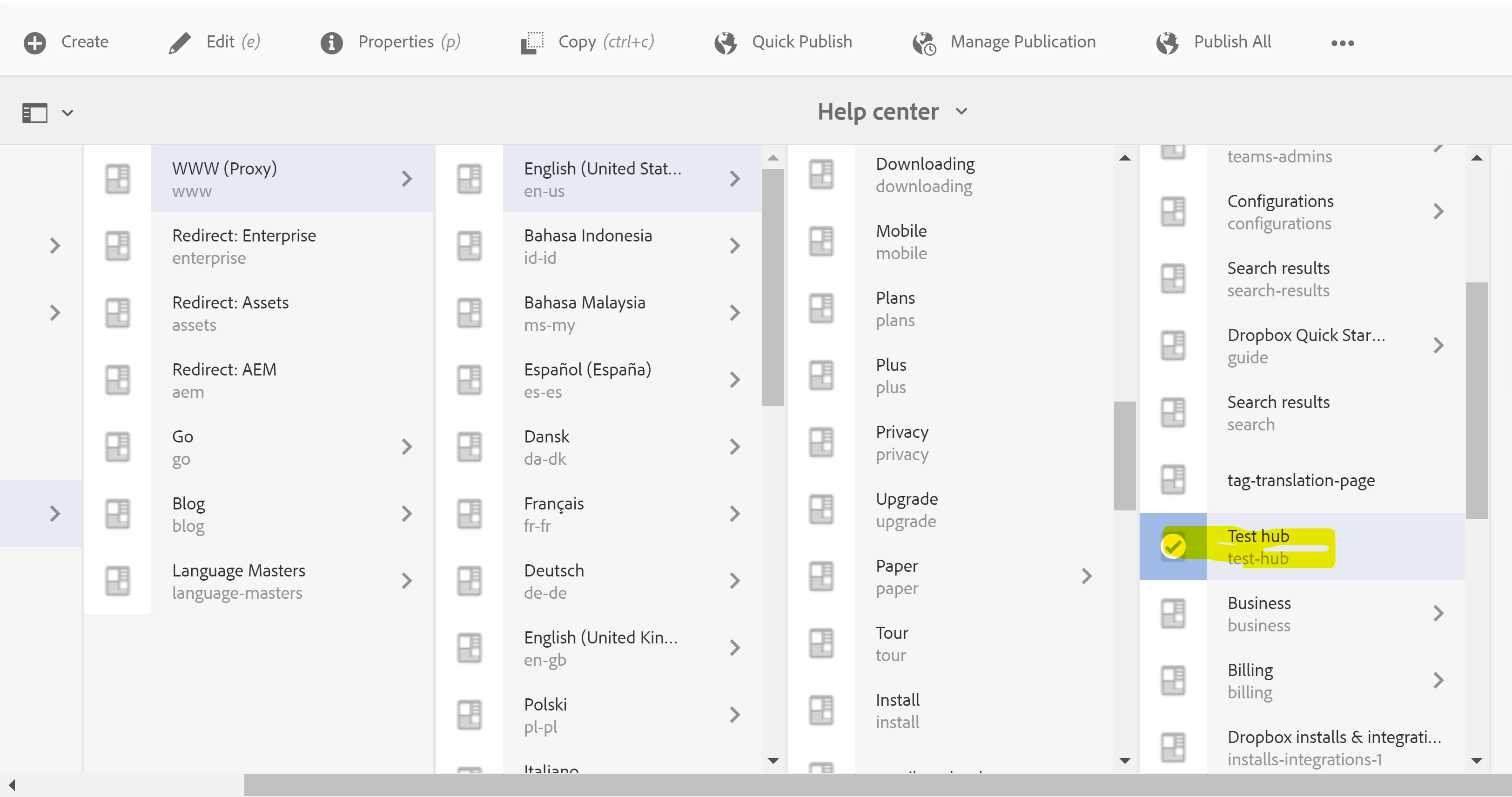 I'm have an issue where 2 pages in sites which are at the same level have different options on the action bar.