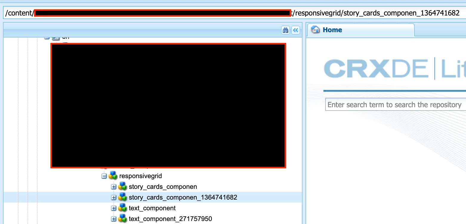 [/content/OBFUSCATED_PATH/responsivegrid/story_cards_componen_1364741682] does not exist anymore