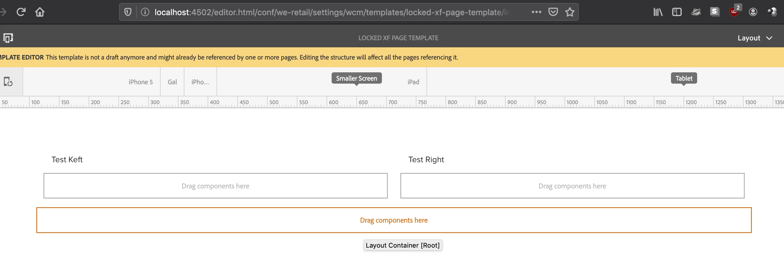 Goal: Create an XF template with two "columns" of image (or text or any other) component. Lock it down so authors can change content but nothing else.