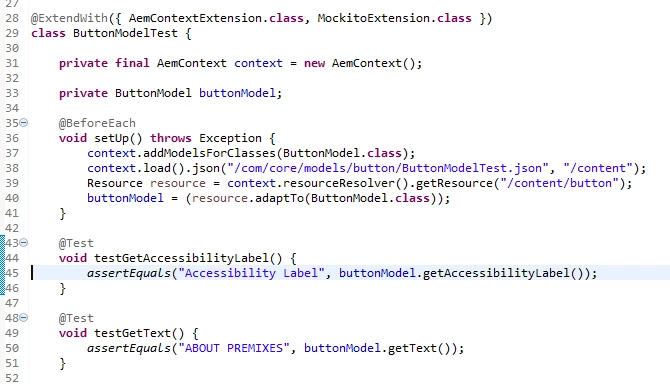 I am facing NullPointerException on ButtonModelTest. ButtonModel class is created based on delegation pattern, which implements Button(core component class).