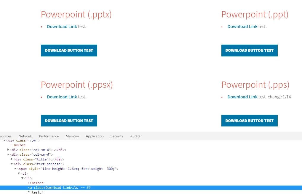 Currently when I add a link to the ppt, ppsx or pps assets in the DAM via the text component it does not keep the link to the asset in the DAM and returns an empty <a href> on the page like so: