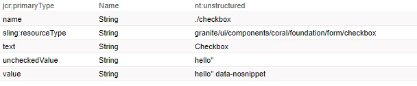 <div class="hello" data-sly-attribute.data-nosnippet="${properties.propertyCheckbox ? true : ''}">heading</div>