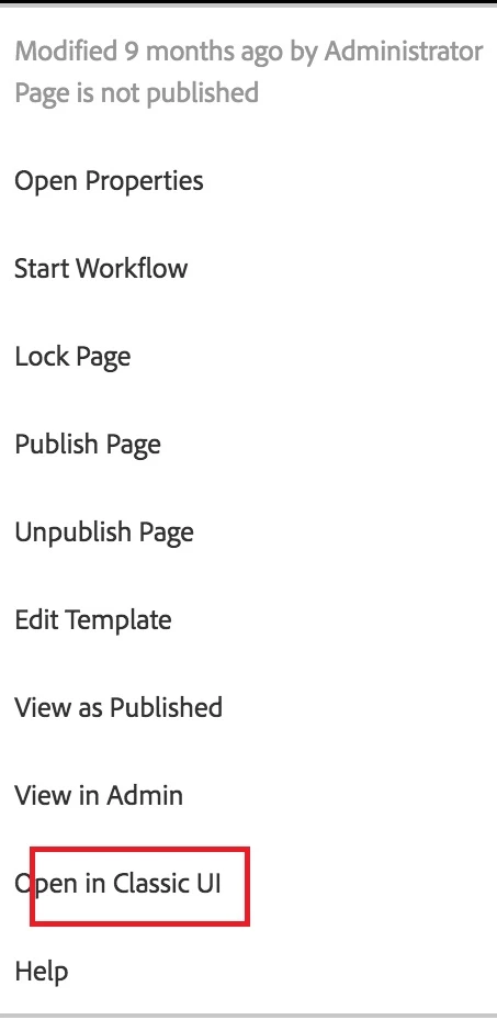 We don't see an option "Open in Classic UI" no more in drop-down; was this removed in AEM 6.3? If Yes, is there any workaround to show that option? Thanks
