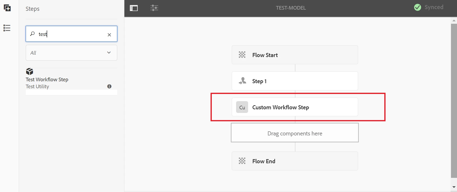 Not able to drag & drop the custom workflow step