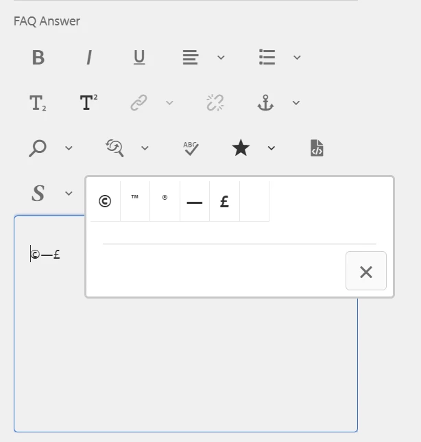 I am trying to select the special characters from the RTE but when I select the special character the cursor is not moving forward because of which the next character is added in front of first character.