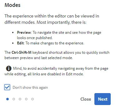 Onboarding Wizard: "Don't show this again" Won't Stop Showing (AEM 6.5.13.0 Touch UI)