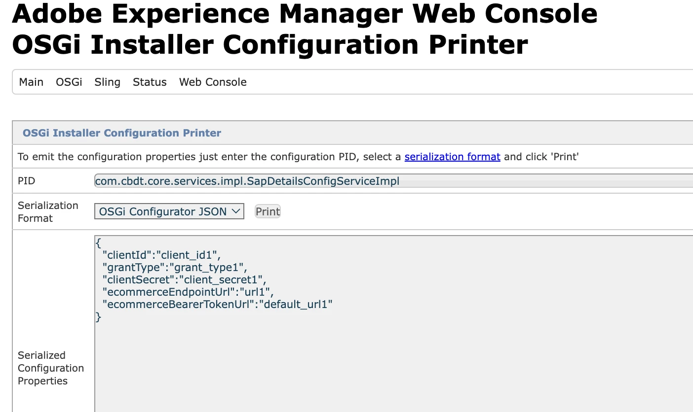 Just don't forget to remove the configuration /apps/system/config/com.cbdt.core.services.impl.SapDetailsConfigServiceImpl.cfg.json after you pasted it to your source codes (see #1)