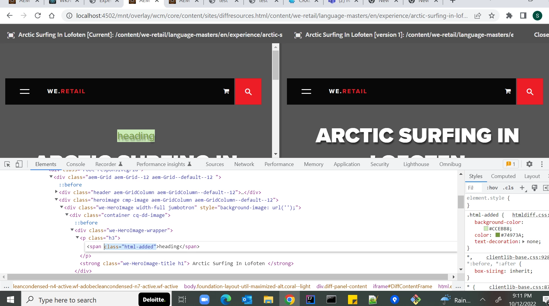 So here if you see highlighting option is working for normal projects and we are not able to see/add the CSS classes being added at SPA page difference while comparing versions. Is there any work around for this or could any one plz suggest any other ways to enable this.