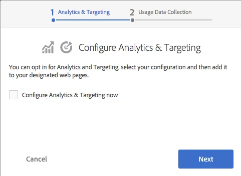Documentation says - On the Configure Analytics And Targeting dialog box, select Configure Analytics & Targeting Now and click Next.