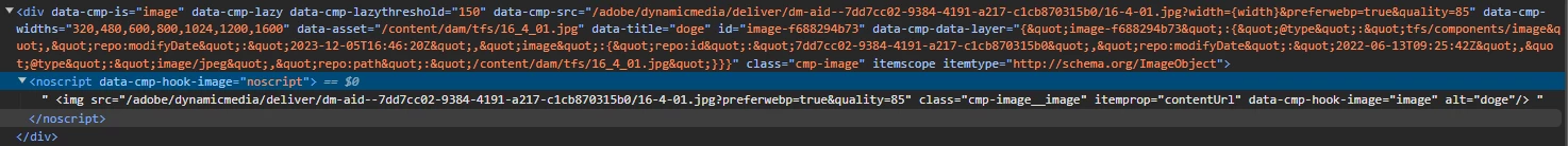 The weird thing is that the converted asset as webp appears on the browser console but as a NoScript tag