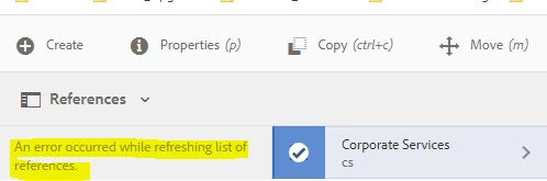 References option in AEM content is showing Internal server Error