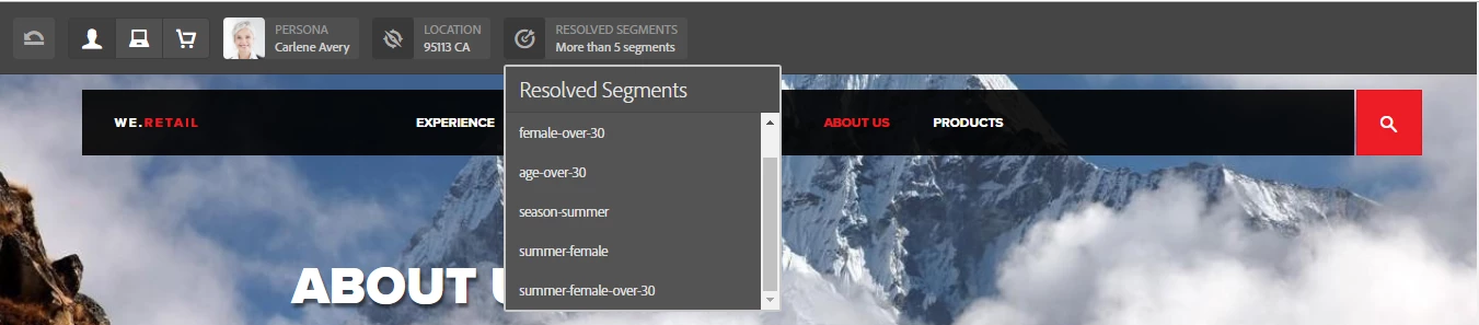 I am trying to achieve personalisation in AEM 6.3. I am not able to see "Resolved Segments" in contexthub toolbar in my project. Whereas if I try in we-retail site, I can see "resolved segments" such as female,age-over-30, season-summer etc.