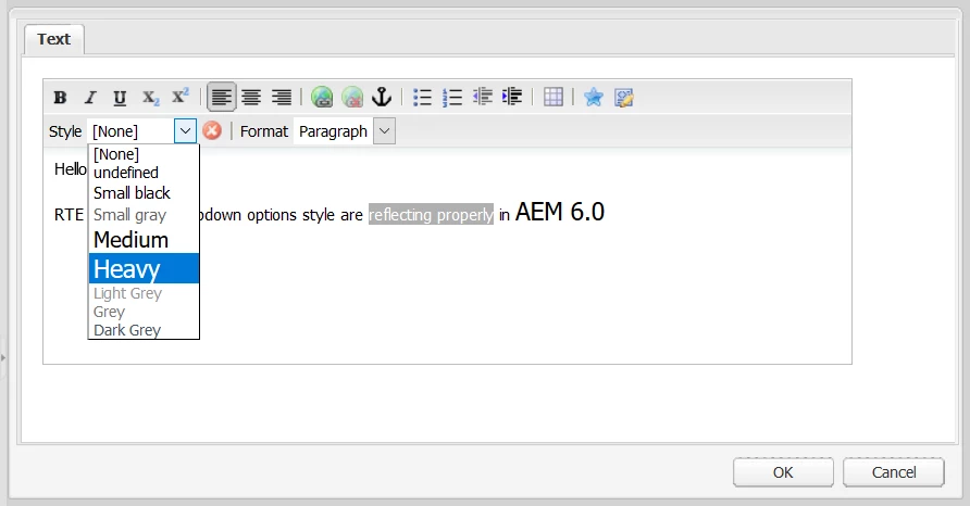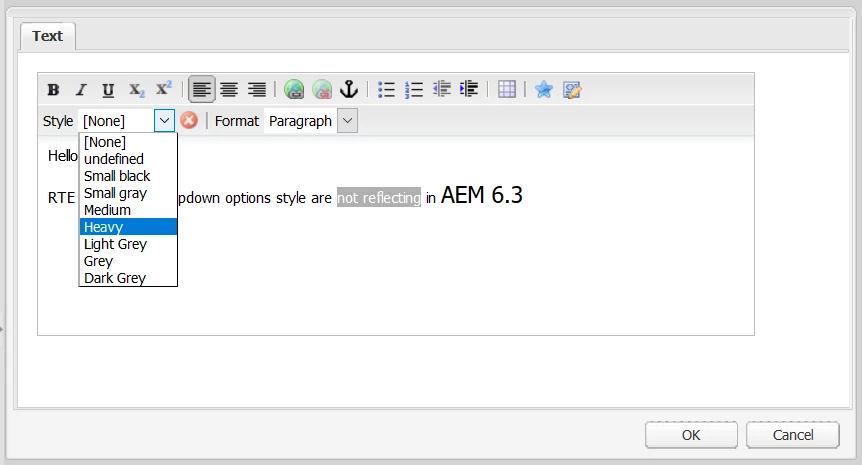 RTE Styles plugin issue in AEM 6.3 classic UI?
