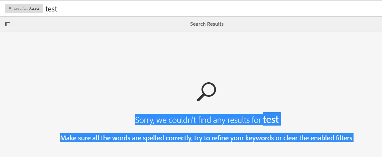 If I remove the Location assets and do the seatch again it will not show the empty result message.